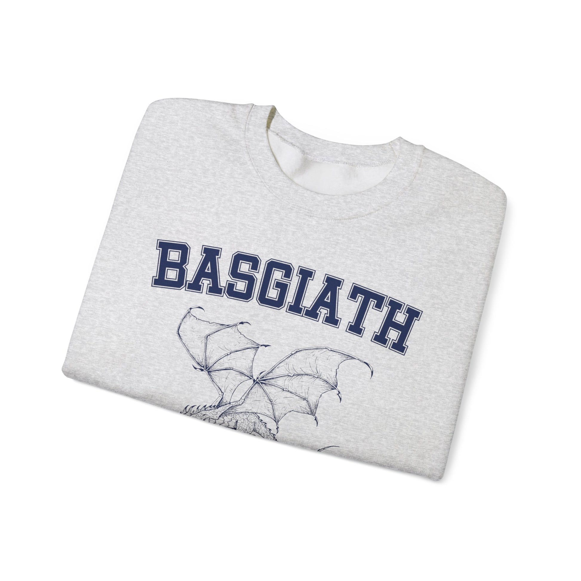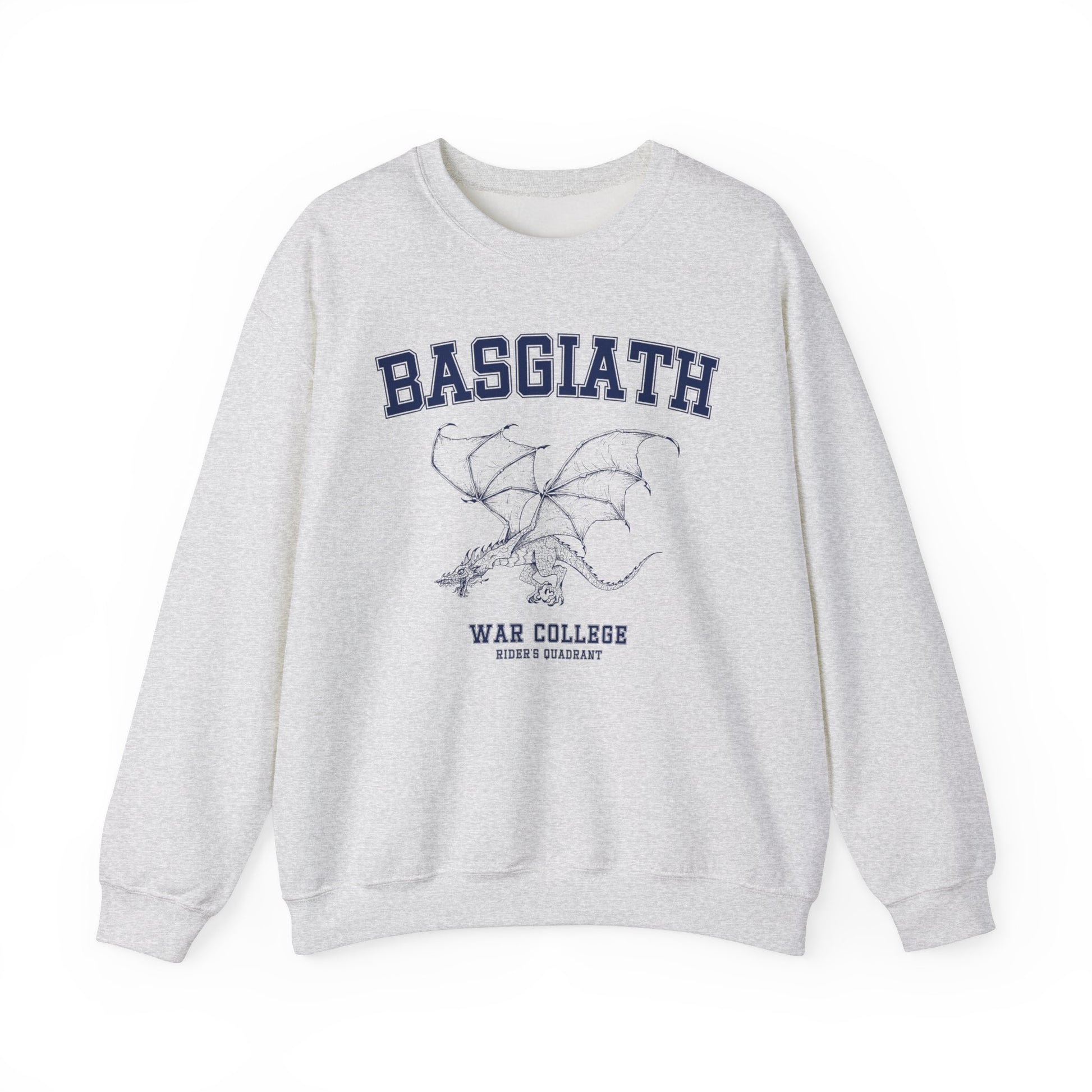 Earn your place at Basgiath War College with this sleek black sweatshirt, featuring "Basgiath" boldly above a fierce dragon and "War College Rider’s Quadrant" below. This design is a must-have for those who live by the code: Fly or Die.