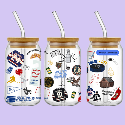 Este vaso de vidrio de 16 oz, inspirado en Heated Rivalry de Rachel Reid, celebra una historia de romance gay, tensión constante y sentimientos que nunca pudieron ser simples. Con tapa de bambú y popote de vidrio, es perfecto para acompañar esas relecturas que duelen, reconfortan y se quedan contigo mucho después de la última página.