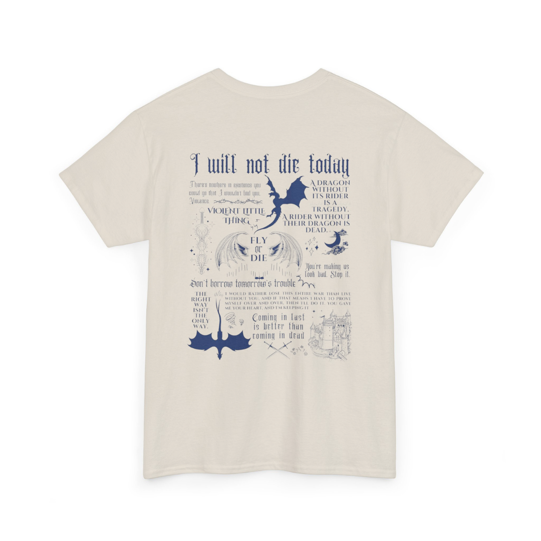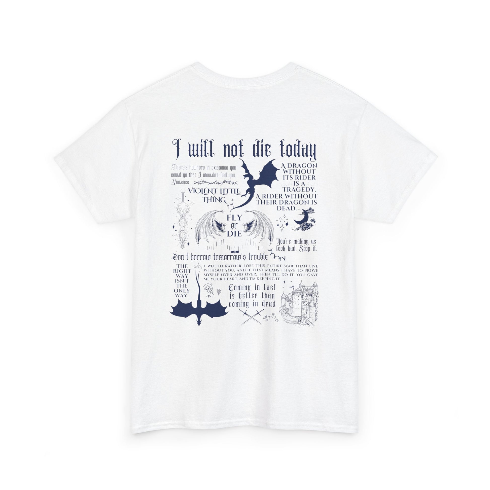Featuring three dragons on the top right corner, this design keeps it subtle in the front, while the back is a masterpiece of iconic quotes and illustrations inspired by The Empyrean series. A must-have for those who live and breathe the world of Basgiath.